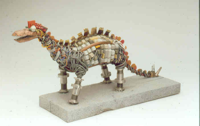 dinosaurs - I've made 2 series of these so far...lots & lots of wire and various electronic parts. Pretty self-explanatory.